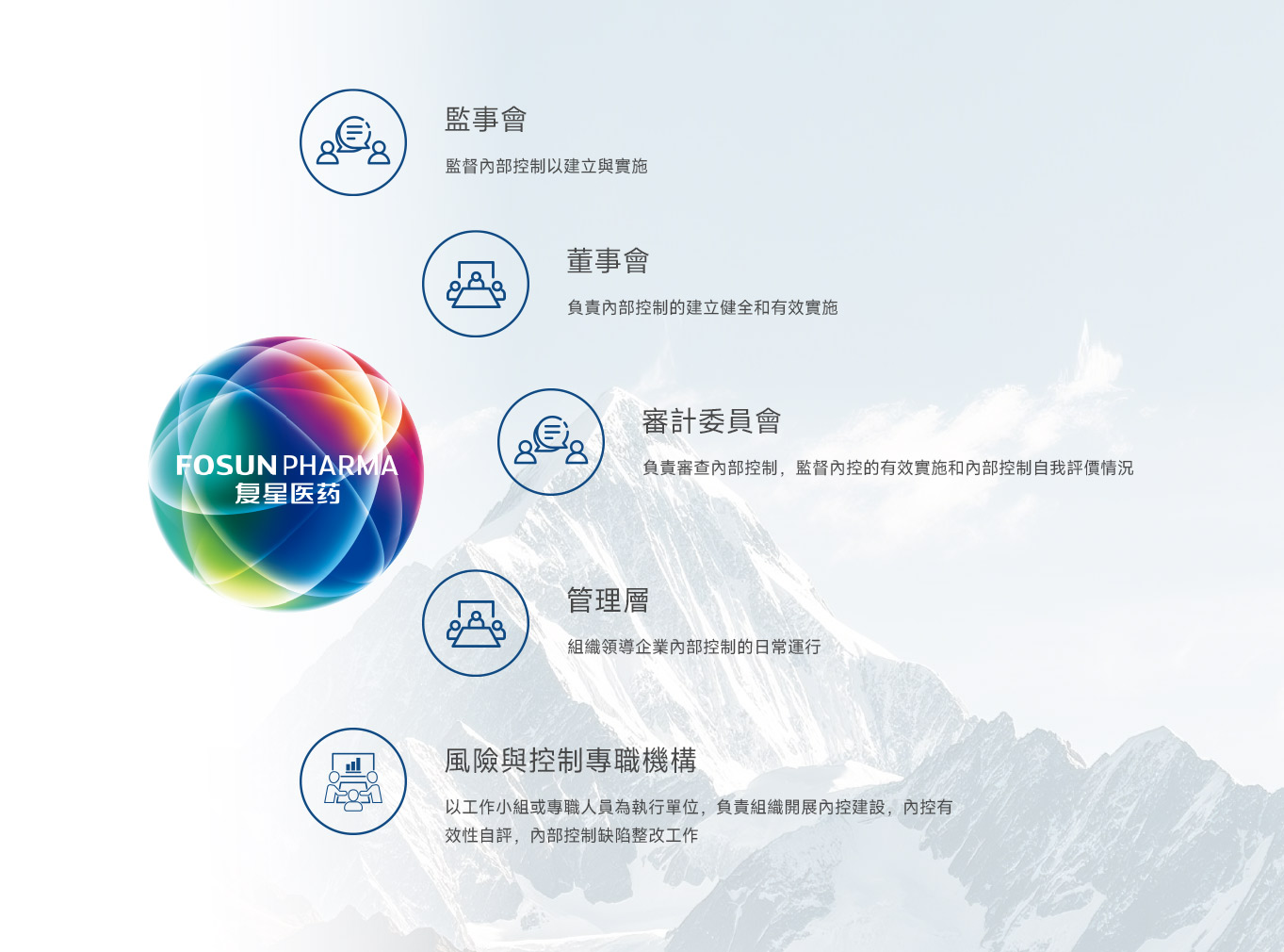 復星醫藥集團構建了由董事會及董事會ESG委員會、ESG管理委員會、ESG工作小組組成的ESG治理架構,以確保董事會及管理層對可持續發展的有效監管、科學指導及全力支援。